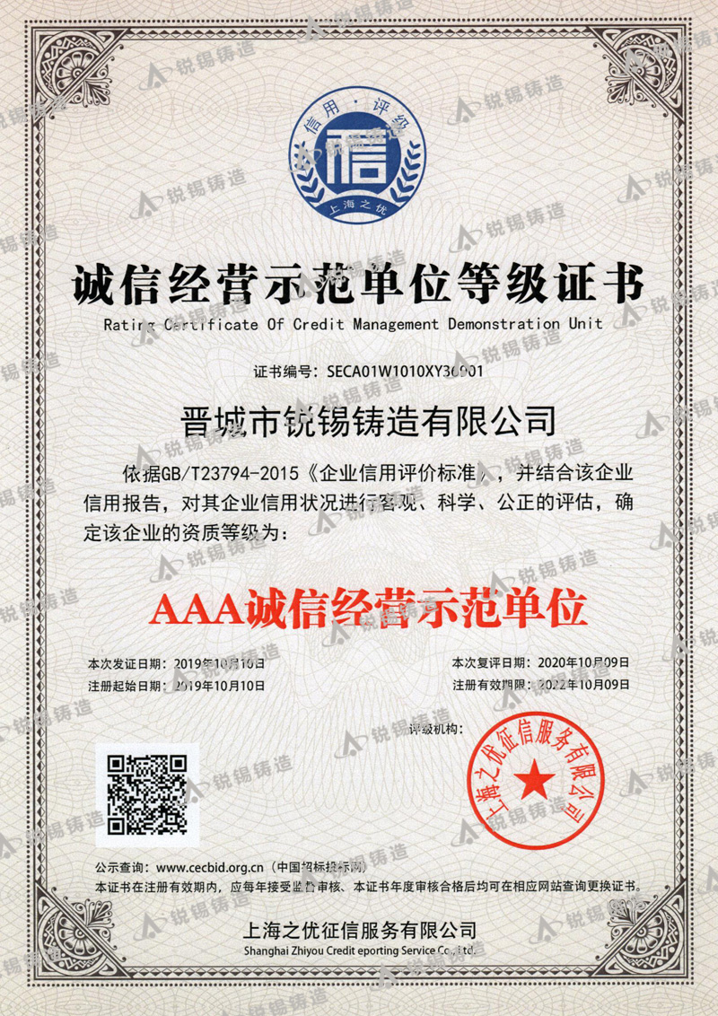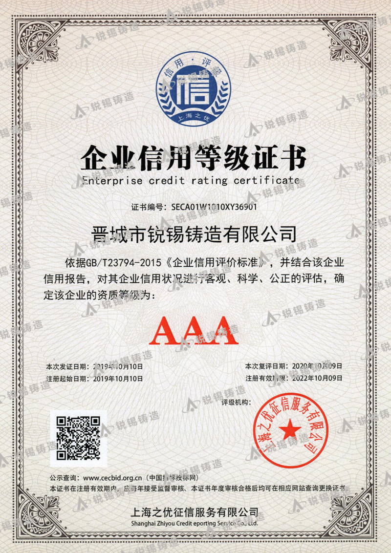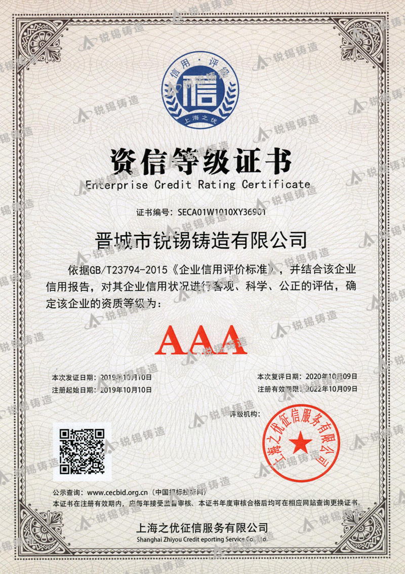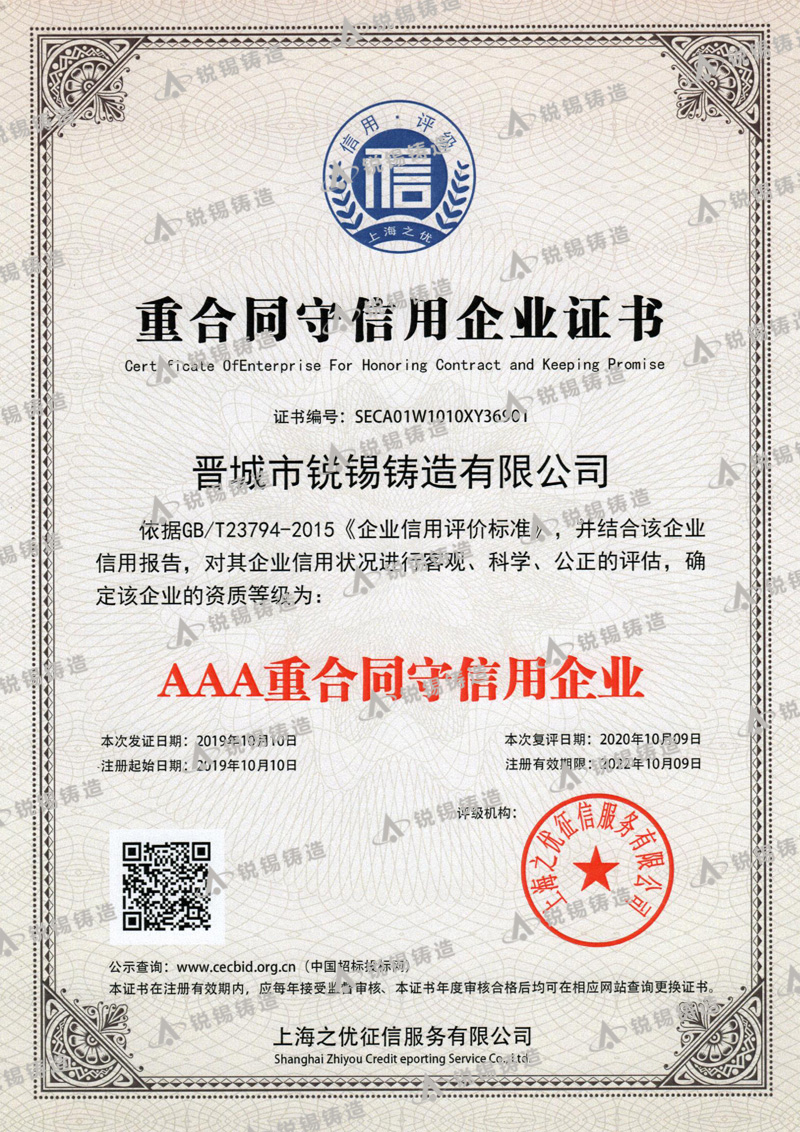 晉城市銳錫鑄造有限公司,成立于1993年,位于“中國鑄造之鄉(xiāng)”山西省晉城市澤州縣南村鑄造工業(yè)園區(qū),占地面積4.3萬㎡,建筑面積3.8萬㎡,現(xiàn)有職工350名,大專以上學歷28名,專業(yè)技術人員15名,經(jīng)過多年的不斷學習創(chuàng)新,造就了一支技術過硬、管理嚴道的專業(yè)鑄造團隊,是一家專業(yè)、設施齊全的精密鑄造企業(yè)。